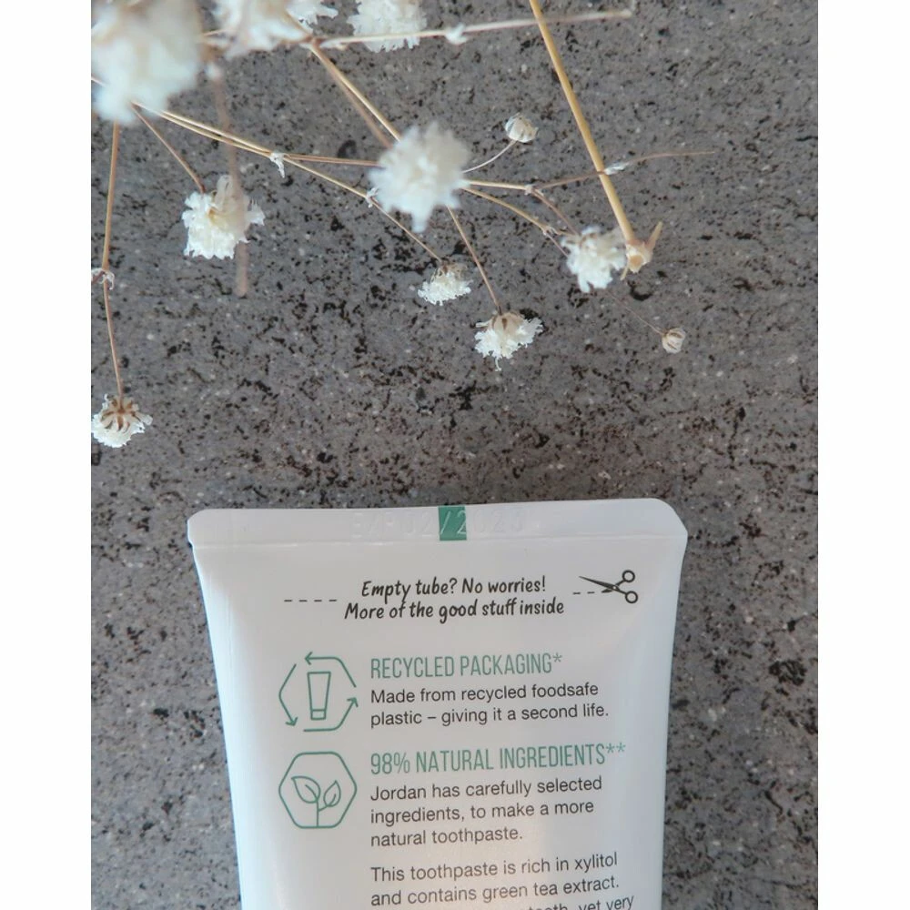 Jordan Tandpasta Green Clean Cavity Protection 75 mlJordan Green Clean Cavity Protection tandpasta is een milde maar zeer effectieve tandpasta en bevat de aanbevolen hoeveelheid fluoride en 10% Xylitol. Xylitol is een natuurlijke zoetstof gewonnen uit berkenhout. In combinatie met fluoride geeft het sterkere tanden en biedt het superieure bescherming tegen tandplak en gaatjes. Jordan Green Clean Cavity Protection tandpasta bestaat voor 98% uit natuurlijke ingrediënten die zorgvuldig zijn ge