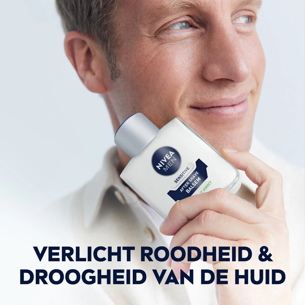 Nivea Men Sensitive Aftershave BalsemNivea Men Sensitive After Shave Balsem voor mannen met een gevoelige huid die hun geïrriteerde en rode huid onmiddellijk willen verzachten. Deze rijke balsem verzacht direct 5 tekenen van irritaties na het scheren: een branderig gevoel, roodheid, droogheid, een trekkerig gevoel en een gevoel van jeuk. Huidvriendelijkheid dermatologisch goedgekeurd bij mannen met een gevoelige huid.Kalmeert de huid onmiddellijk en vermindert roodheidVoorkomt irritatiesVer